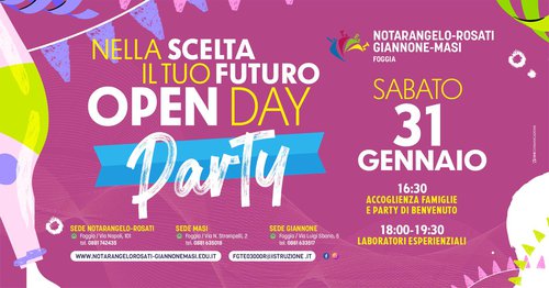 L'ITET Notarangelo Rosati-Giannone Masi di Foggia organizza l'Open Day Party! "Nella scelta il tuo futuro" sabato 31 gennaio 2026.